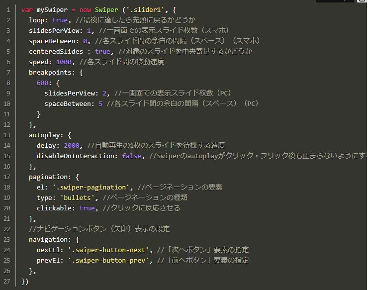 Swiper基本設定のJavaScriptを書く